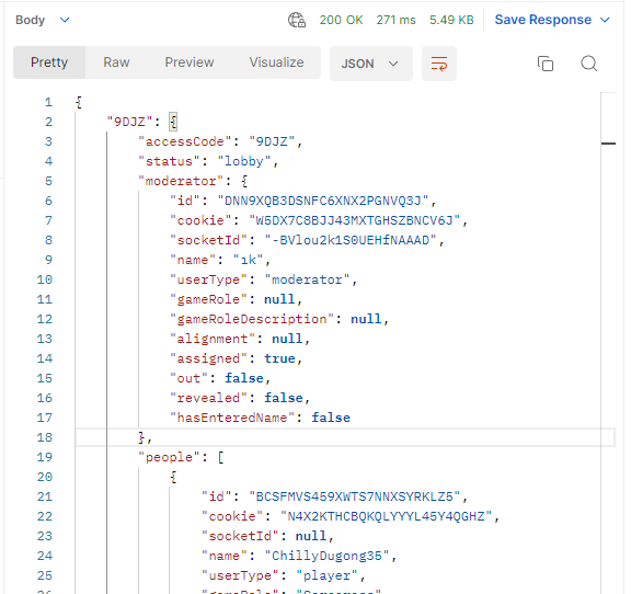 + +- **PUT /games/state** - replaces the current state of existing games with the provided JSON object. **Warning: if you do not provide a valid JSON object (one that aligns with, for example, what's returned from GET /games/state), the application could break.** + +- **POST /sockets/broadcast** - broadcasts a message to all connected sockets. This is not currently handled on the front-end, so it will not display anywhere. + +##### Example cURL +``` +curl -XGET -H 'Authorization: Basic bW9ja19hdXRoCg==' 'http://localhost:5000/api/admin/games/state' +``` + ## Testing